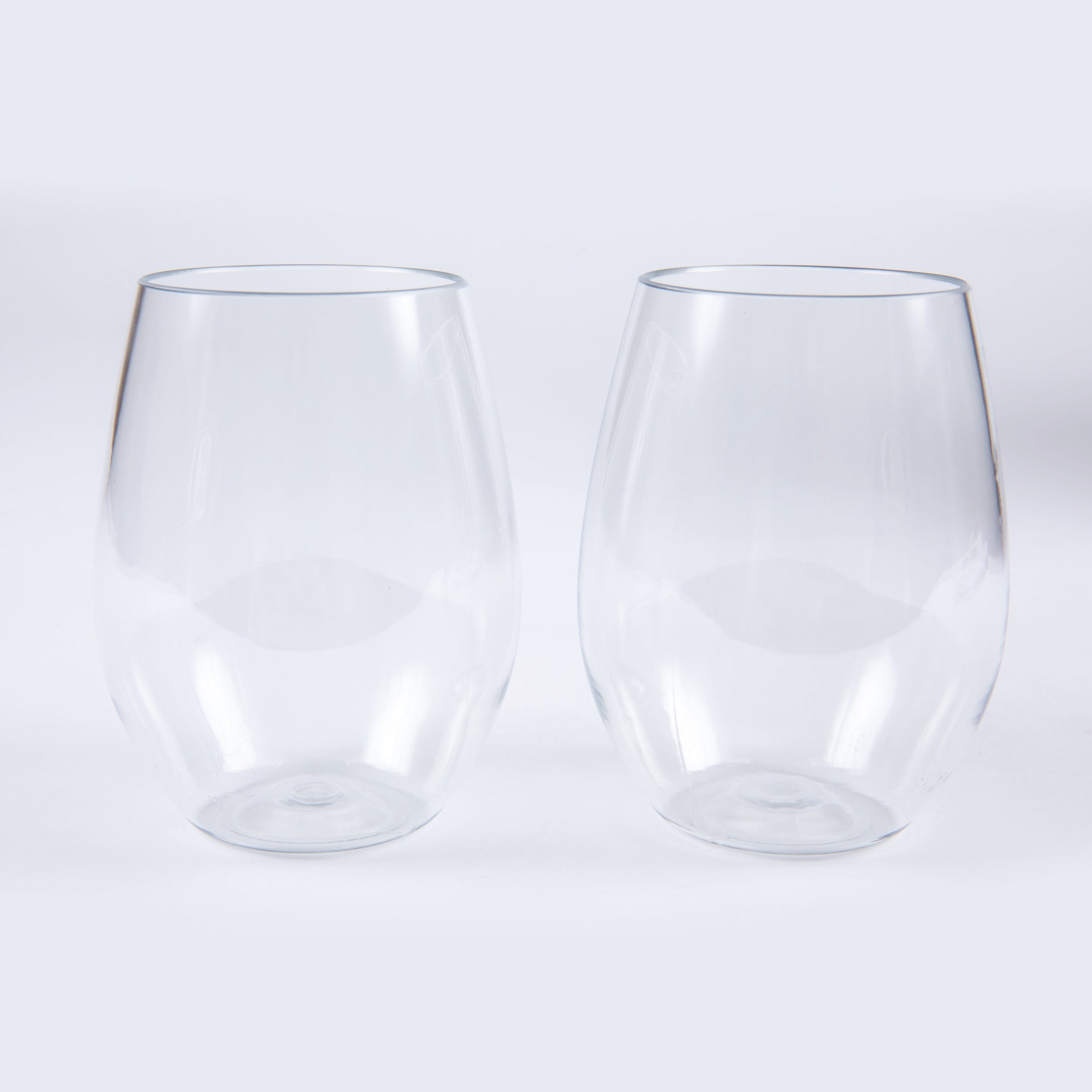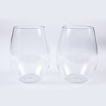 - 2 Stemless Wine Glasses, (2.5" D x 3.5" H, 8 oz.)