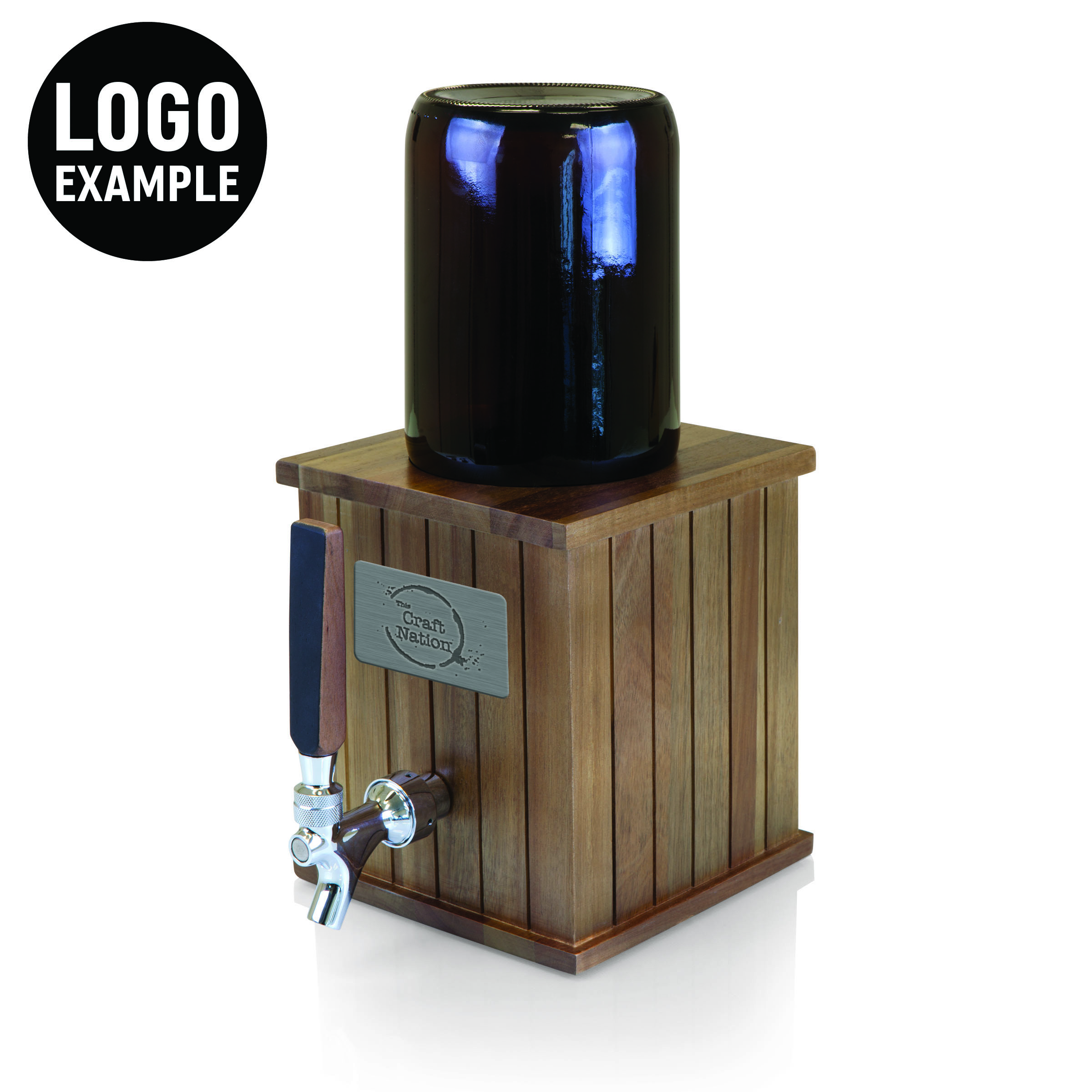 This little mini tap is so nice! Great addition just sitting on a table. Will hold beer or other beverages. The wood is a great color and the bottle is sturdy. Easy to RI se out and the dispensing part works perfectly.
