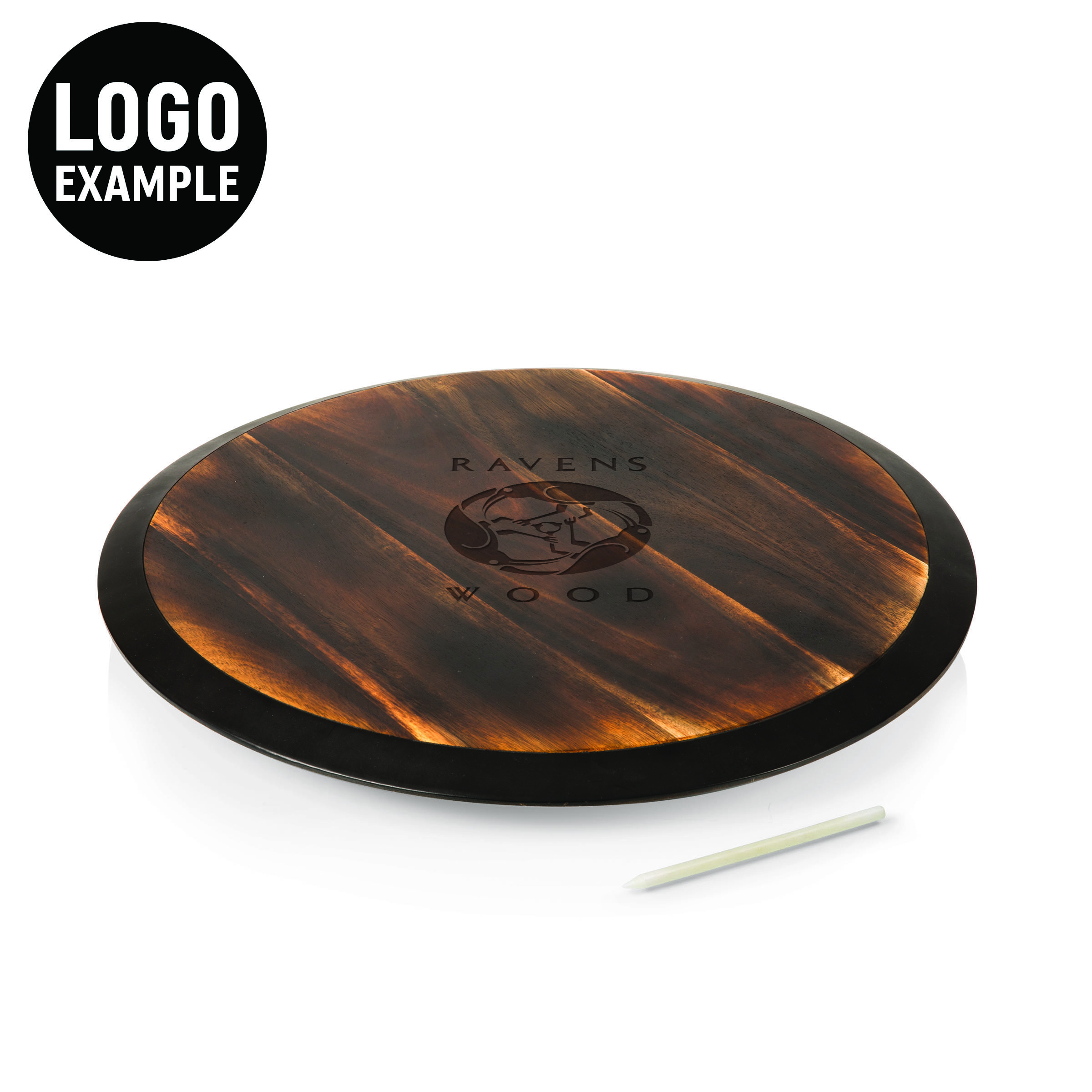 This lazy susan serving platter is absolutely gorgeous. The wood is acacia and its really nice quality. I especially love the chalkboard edge so you can label the types of cheeses or charcuterie for your guests. They even include a soapstone pencil to write with. Im really impressed with the quality of this platter and I look forward to entertaining and showing it off.